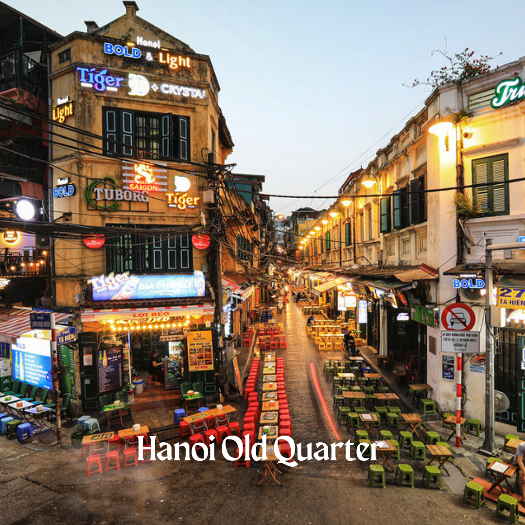 Get lost in the vibrant maze of narrow streets, each dedicated to traditional trades. Here you’ll find street food, coffee shops, and the soul of Hanoi.