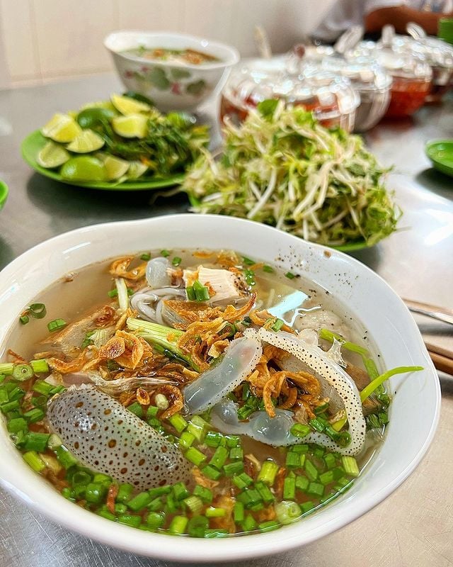A specialty of coastal regions, attracting many visitors to Vung Tau. The broth is simmered from pork bones for hours, clear and not greasy, with a sweet and savory flavor.