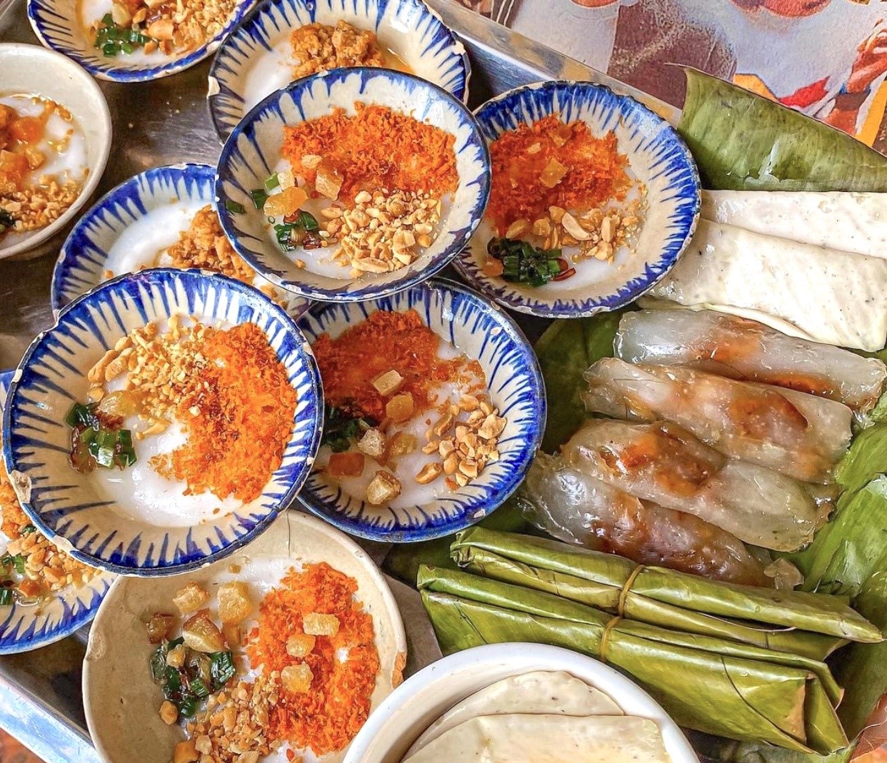 A signature dish of Vung Tau, made from rice flour and shrimp, usually served with sweet and sour fish sauce and fresh vegetables.